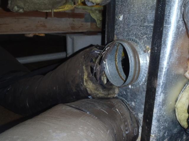 This homeowner has a serious problem with the ducts in their home. This duct has almost completely detached and the air cannot properly travel through the ducts to reach the conditioned space of the home. This Stevensville, MD home needs duct repair! Dr. Energy Saver can repair the ducts in your home and make the air you pay to cool going where it's supposed to!